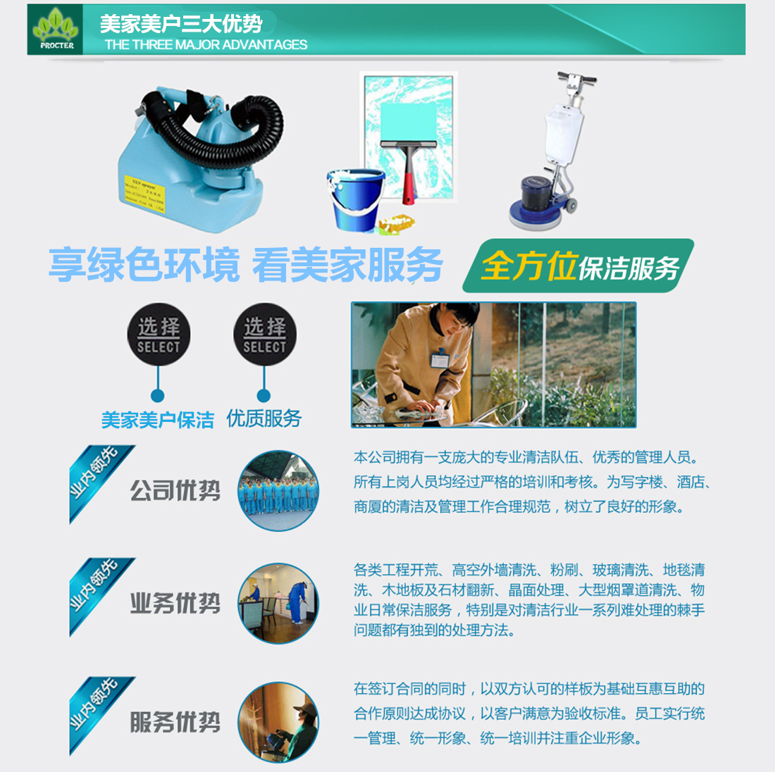 綿陽市美家美戶家政有限公司成立于2004年,是一家專業(yè)從事家庭、企事業(yè)單位、賓館、酒店等保潔服務的大型服務公司,公司至今成立十一年來現(xiàn)有員工105名,管理人員16名,場地500平米。公司現(xiàn)網(wǎng)點有開元店、高新店、高水店、園藝店、三臺公司、江油公司、遂寧公司等多個服務網(wǎng)點。 公司自成立以來,一直秉承“謀利于耕者,謀福于食者”的宗旨,以“服務全川,***業(yè)萬人”為目標,堅持“做一家客戶,樹一個口碑;做一個行業(yè),樹一個品牌”的服務理念,發(fā)揚……